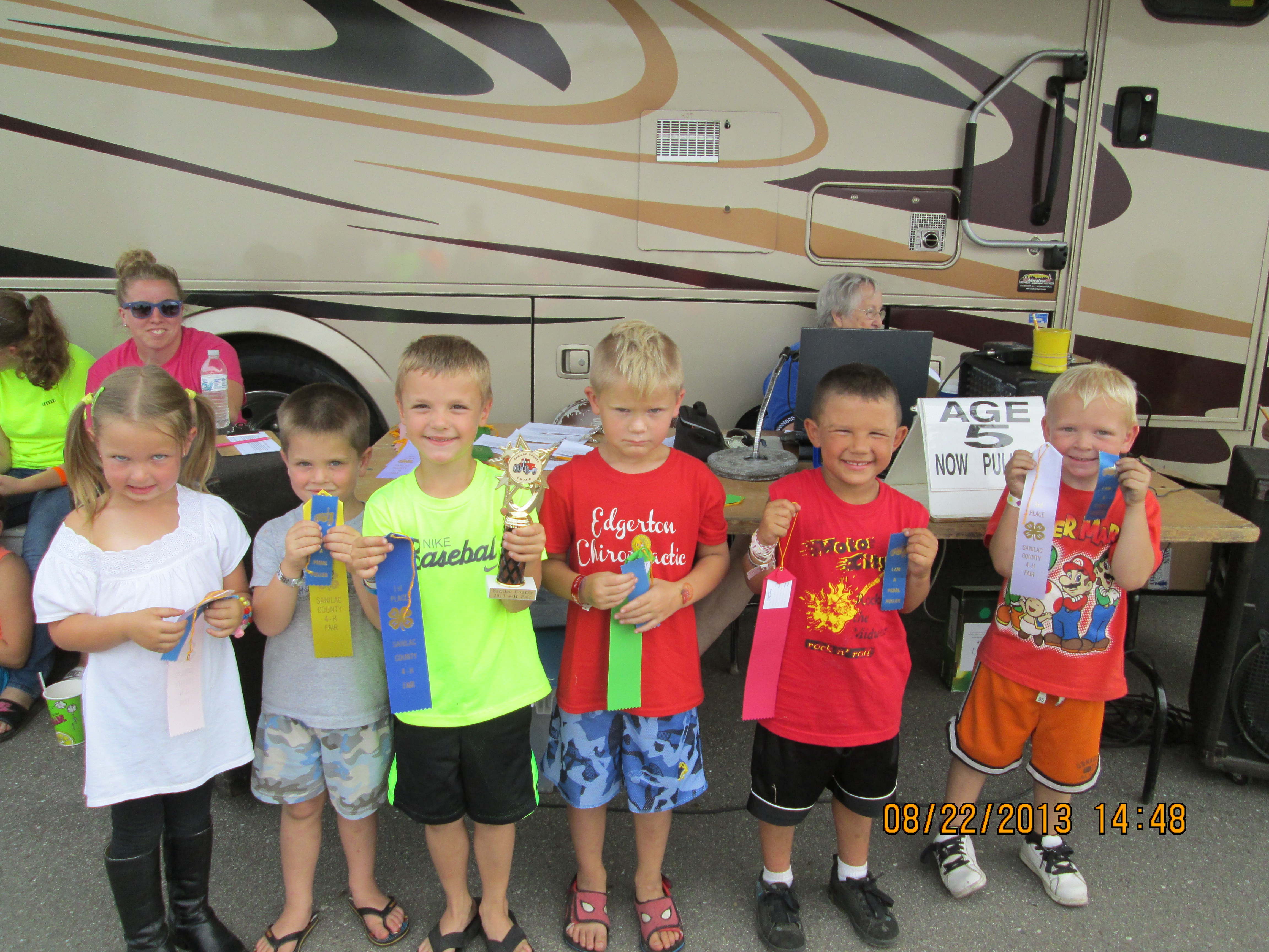 Age 6: 1st Joey Burns with 2 full pulls. Tyler Bush & Aiden Whybrew had full pulls and received Blue Ribbons.