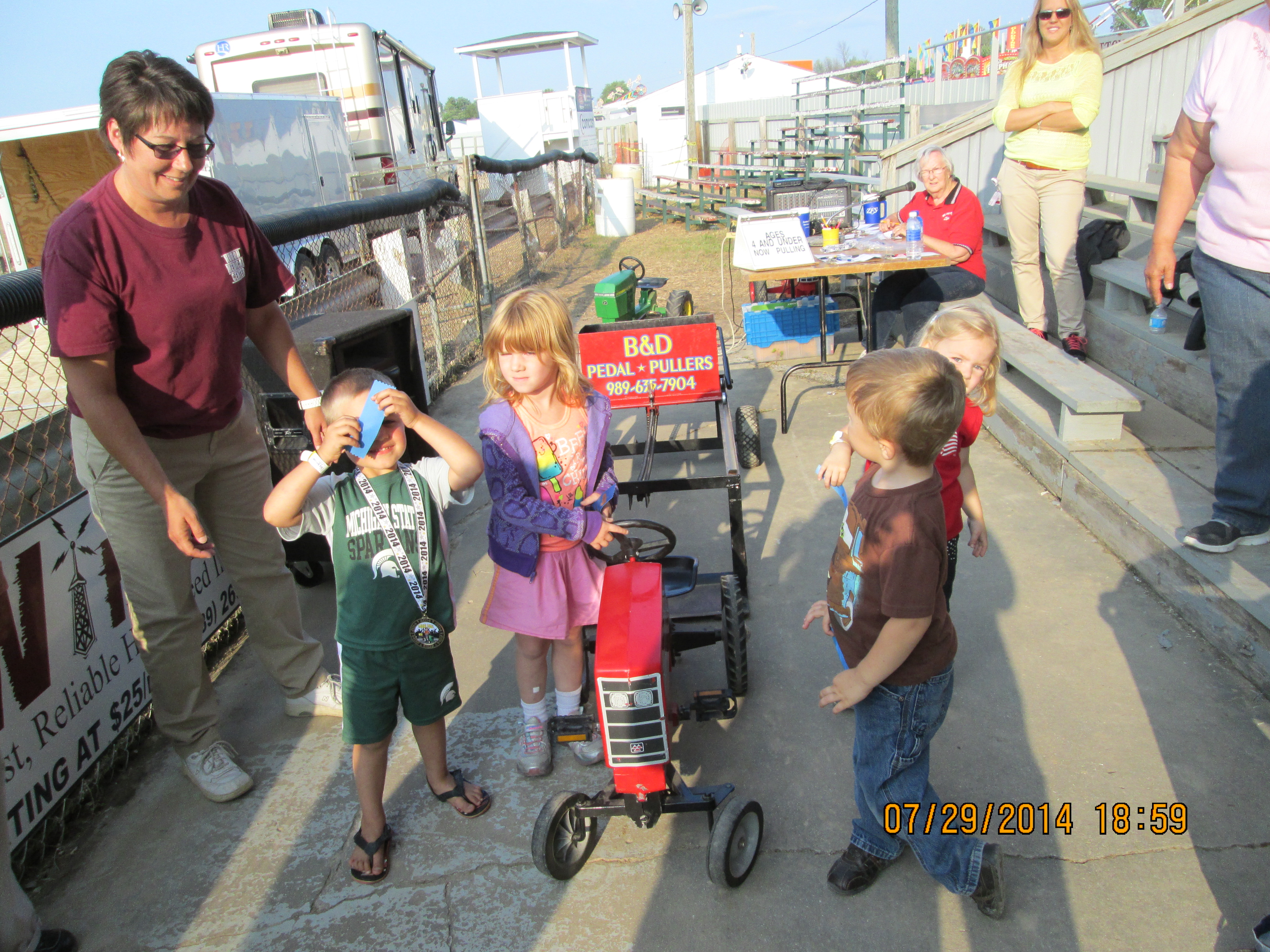 The Huron Medical Center took over the Grandstand to entertain the youngsters at the Fair. They had a petting zoo, clown, pie eating contest and the pedal pull finished the evening. It was great fun for all.